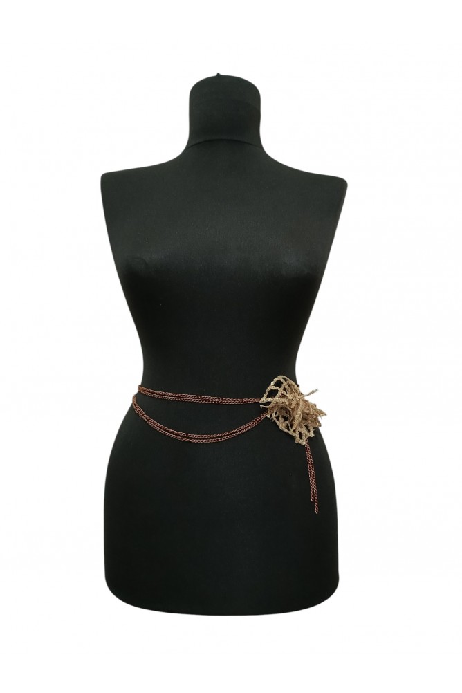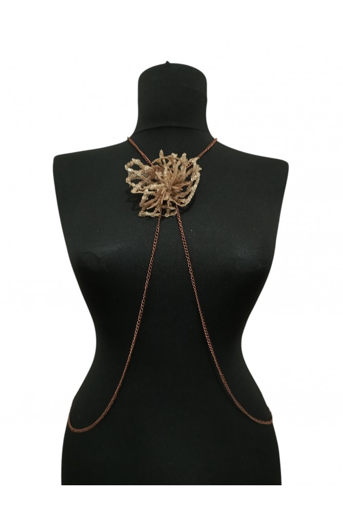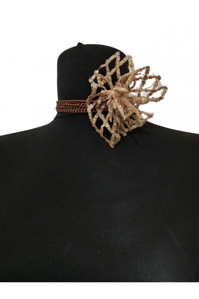 Kahverengi Yaprak Çiçek Kolye, farklı şekillerde kullanılabilen özel tasarım bir aksesuardır. Kolye olarak kullanılmasının yanı sıra boyunluk, vücut aksesuarı, kemer ya da farklı stil kullanımlarında da değerlendirilebilir. Zarif ama dikkat çekici formu sayesinde sade kombinlere özgün bir karakter kazandırır.