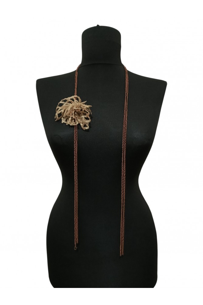 Çiçek bağlantısı: Çiçek detayı, 110 cm uzunluğundaki zincirin 29 cm’lik bölümüne monte edilmiştir