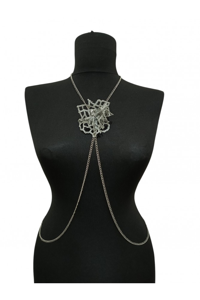 Gri Yaprak Çiçek Kolye, farklı şekillerde kullanılabilen özel tasarım bir aksesuardır. Kolye olarak kullanılmasının yanı sıra boyunluk, vücut aksesuarı, kemer ya da farklı stil kullanımlarında da değerlendirilebilir. Zarif ama dikkat çekici formu sayesinde sade kombinlere özgün bir karakter kazandırır.