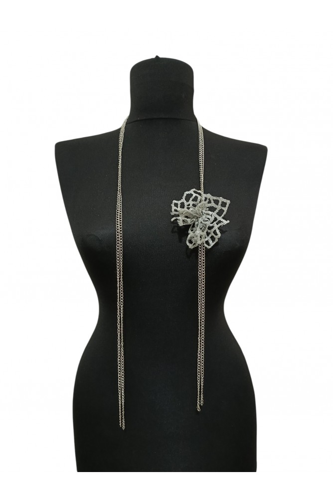 Çiçek bağlantısı: Çiçek detayı, 110 cm uzunluğundaki zincirin 29 cm’lik bölümüne monte edilmiştir