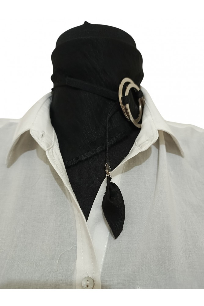 Siyah Asimetrik Boyunluk, modern formu ve özgün duruşuyla sade kombinlere karakter kazandıran özel tasarım bir aksesuardır. Asimetrik kesimi sayesinde klasik boyunluklardan ayrılır ve daha dikkat çekici bir görünüm sunar. Boyunda zarif ama güçlü bir etki oluşturan bu tasarım, hem günlük şık kombinlerde hem de daha iddialı stillerde tamamlayıcı parça olarak kullanılabilir.