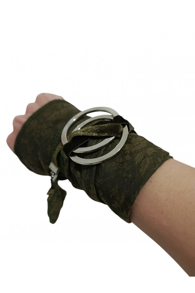 Lastiğin bir ucunda 2 adet zamak halka bulunur. Diğer ucunda ise kumaştan hazırlanmış yaprak detay yer alır. Yapraklı lastik bölüm, zamak halkaların içinden geçirilerek sabitlenir. Bu detay ürüne hem farklı bir kullanım biçimi hem de özgün bir tasarım dokunuşu kazandırır.